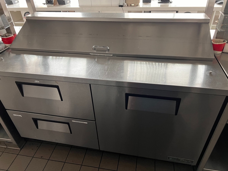 Lots of True coolers and prep stations in various sizes