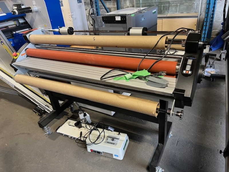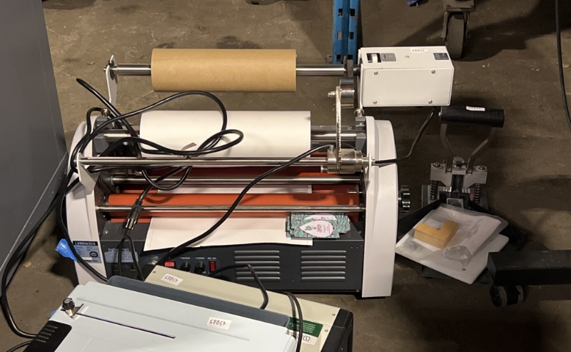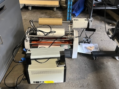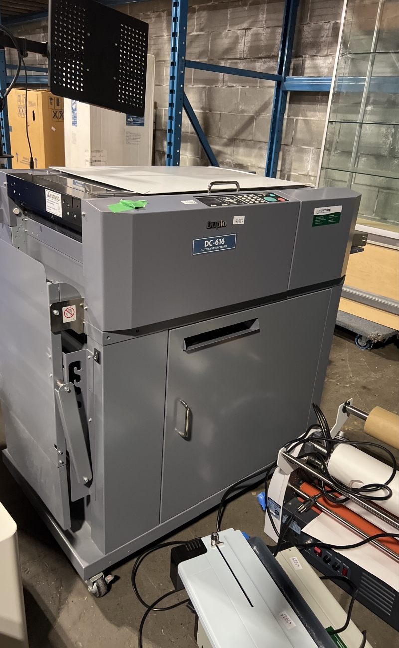 Duplo 616 Pro slitter/cutter/creaser with components, MBB 1800 S paper folder, Rite Media 54" cold laminator, Mimaki 64" CJV 300 -160 printer/cutter, Akiles Flexi punch electric punch, Instafoiler 18 table top laminator and foiling unit, PLS 475I label printer, PLS402F digital label finisher, Fletcher 65" Substrate FSC cutter, Summa 54" cutter & more