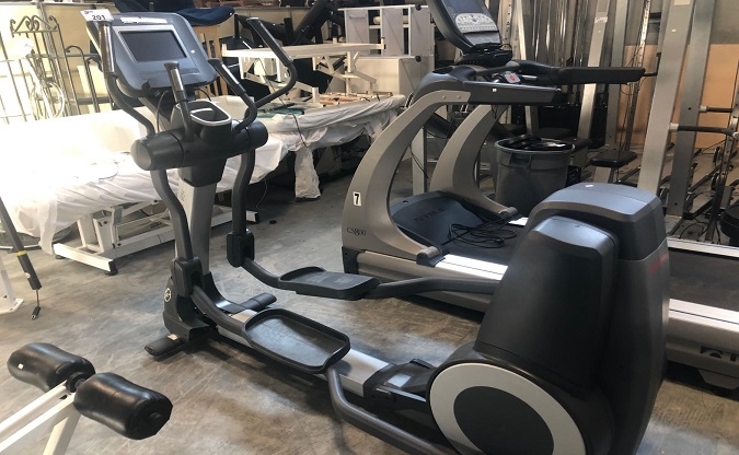 Octane Fitness Max Trainer, Life Fitness 95x Elliptical Trainer, True Fitness C5800 Recumbent Bike, True Fitness C5800 Treadmill, Keiser Infinity Cable Machine, Precore Icarian Line 8 Person Universal Gym, Keiser Hamstring Curl Machine, Large Lot Of Weights And 95 Lb Dumbbell - Must Take All, Black Accessories Rack!
