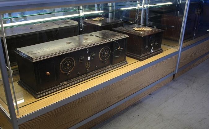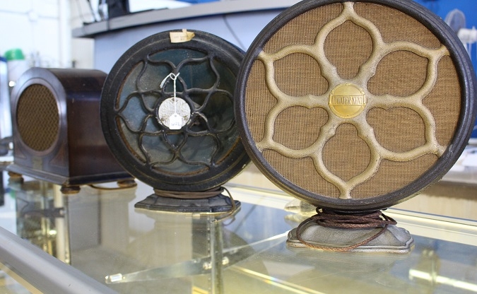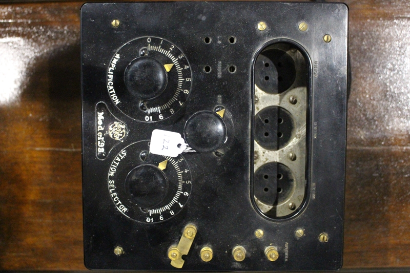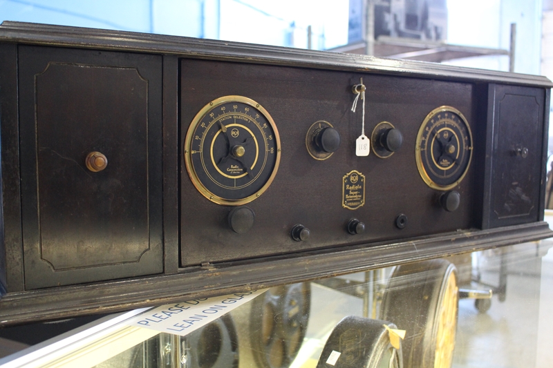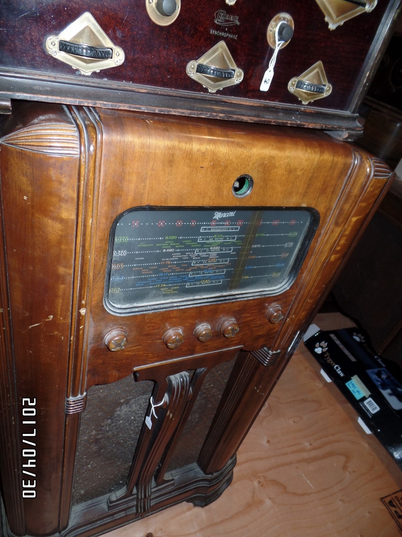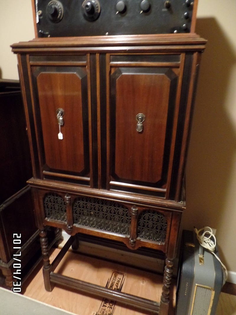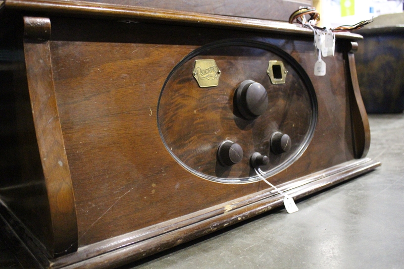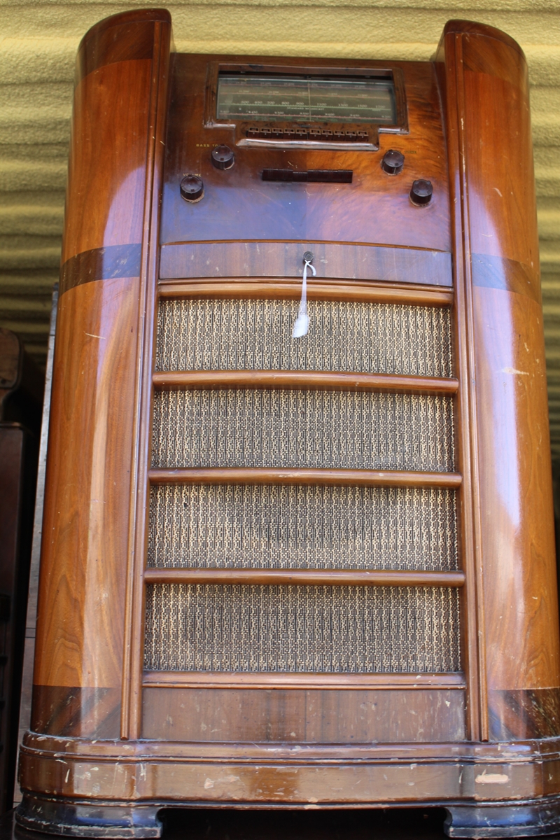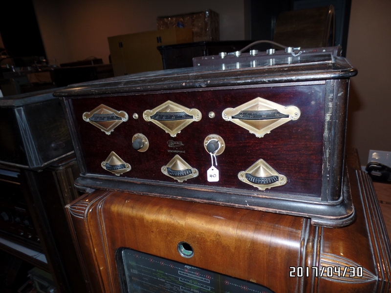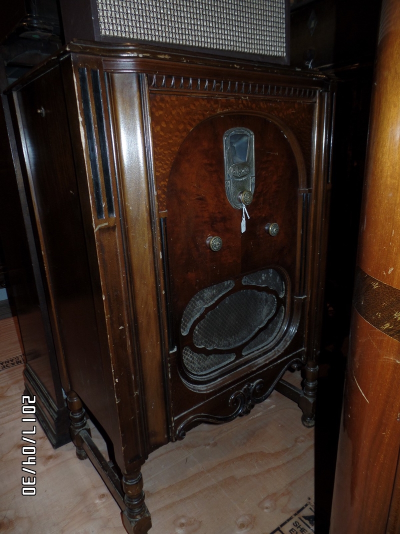 A massive collection of antique and vintage radios, gramophones, regenerative receivers, speakers, horn speakers, tubes and assorted parts; related magazines, manuals and books, and numerous 78 RPM records. Collected over a 60-year period by the late Victor R. Jaeggle (1942-2014), former member of CVRS. An eclectic grouping including rare (e.g. Northern Electric R-1) and iconic (e.g. tombstone radio) items, both large and small, in wood, Bakelite, plastic and metal ranging from about 1910 to 1970s.